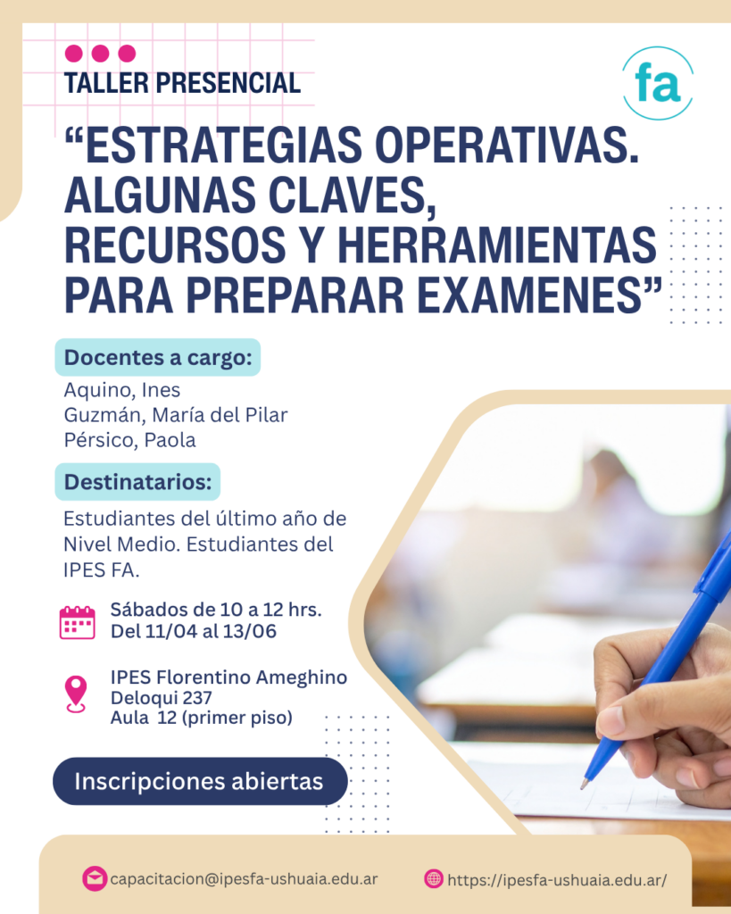 Destinado a: Estudiantes del último año del Nivel Superior del IPES “FA”.